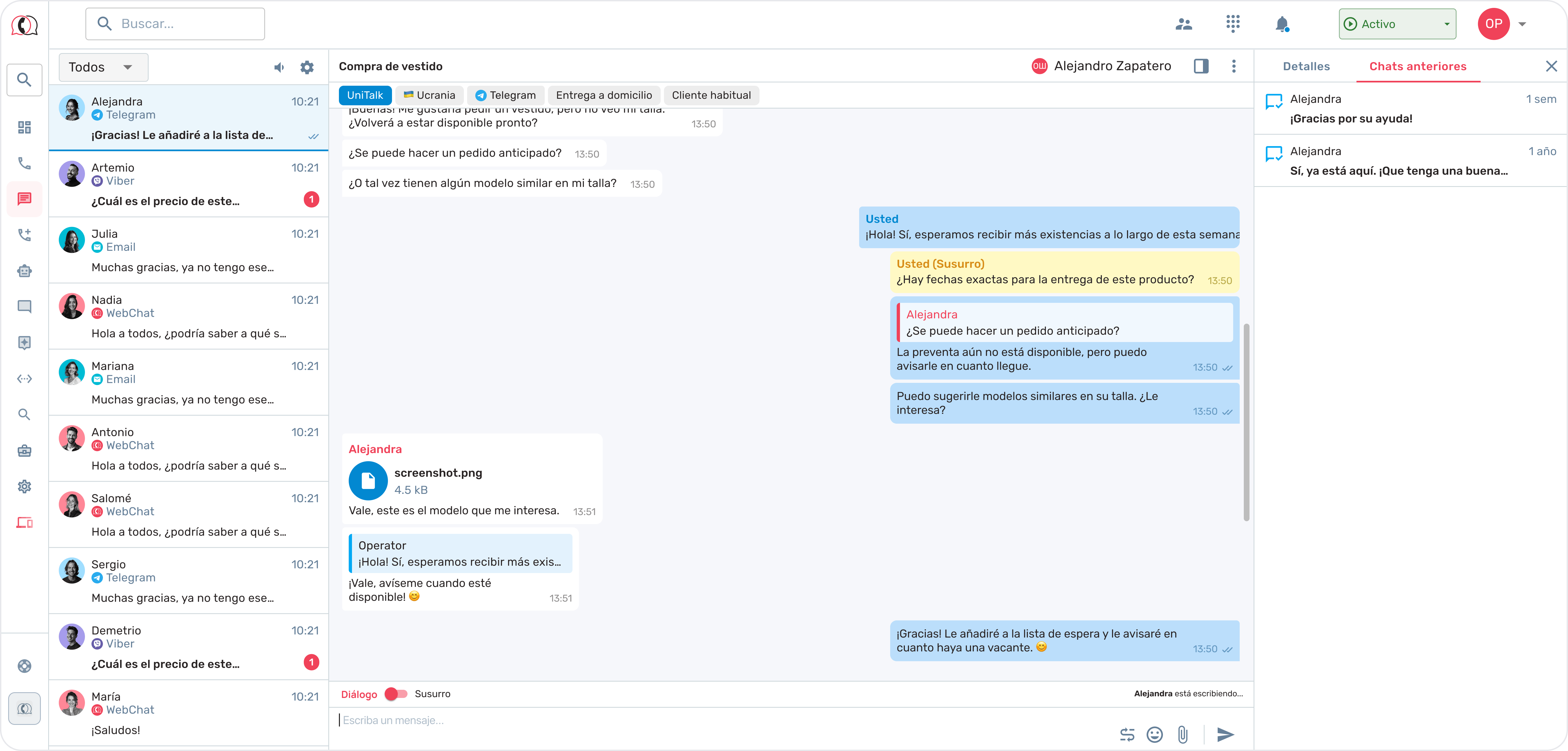 - Sin confusiones entre CRM, teléfono y mensajería: todo en una sola ventana